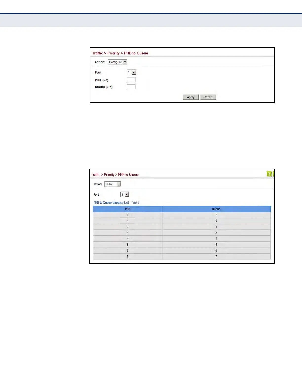 1. Click Traffic, Priority, PHB to Queue.