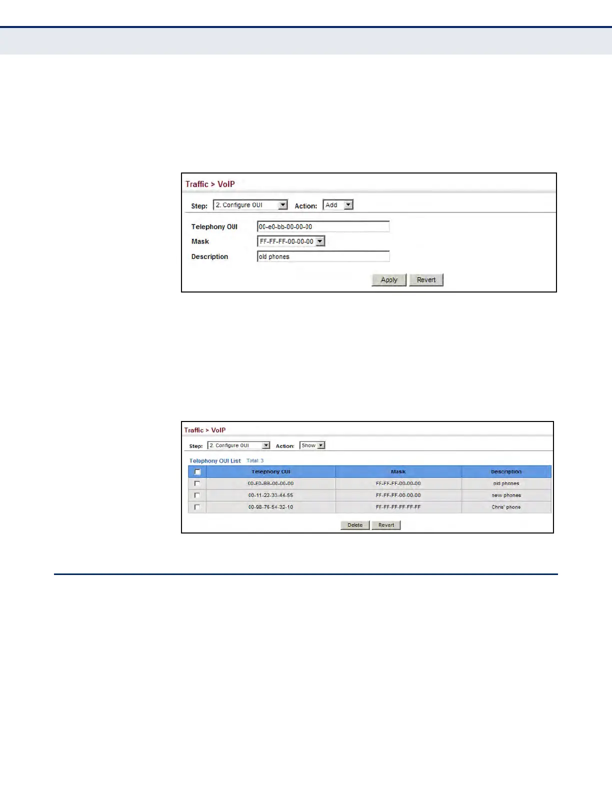 Figure 148: Configuring an OUI Telephony List