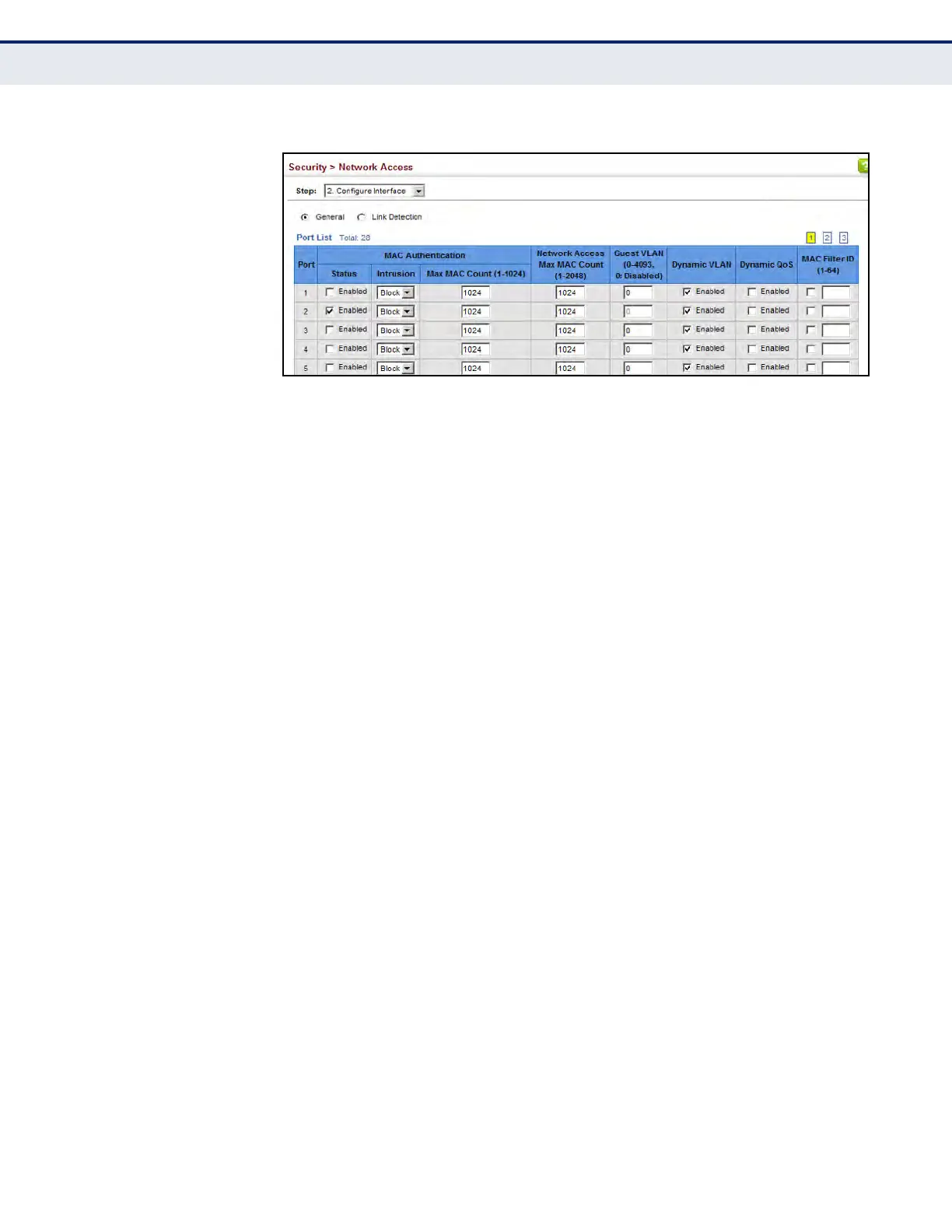 Use the Security > Network Access (Configure Interface - Link Detection)