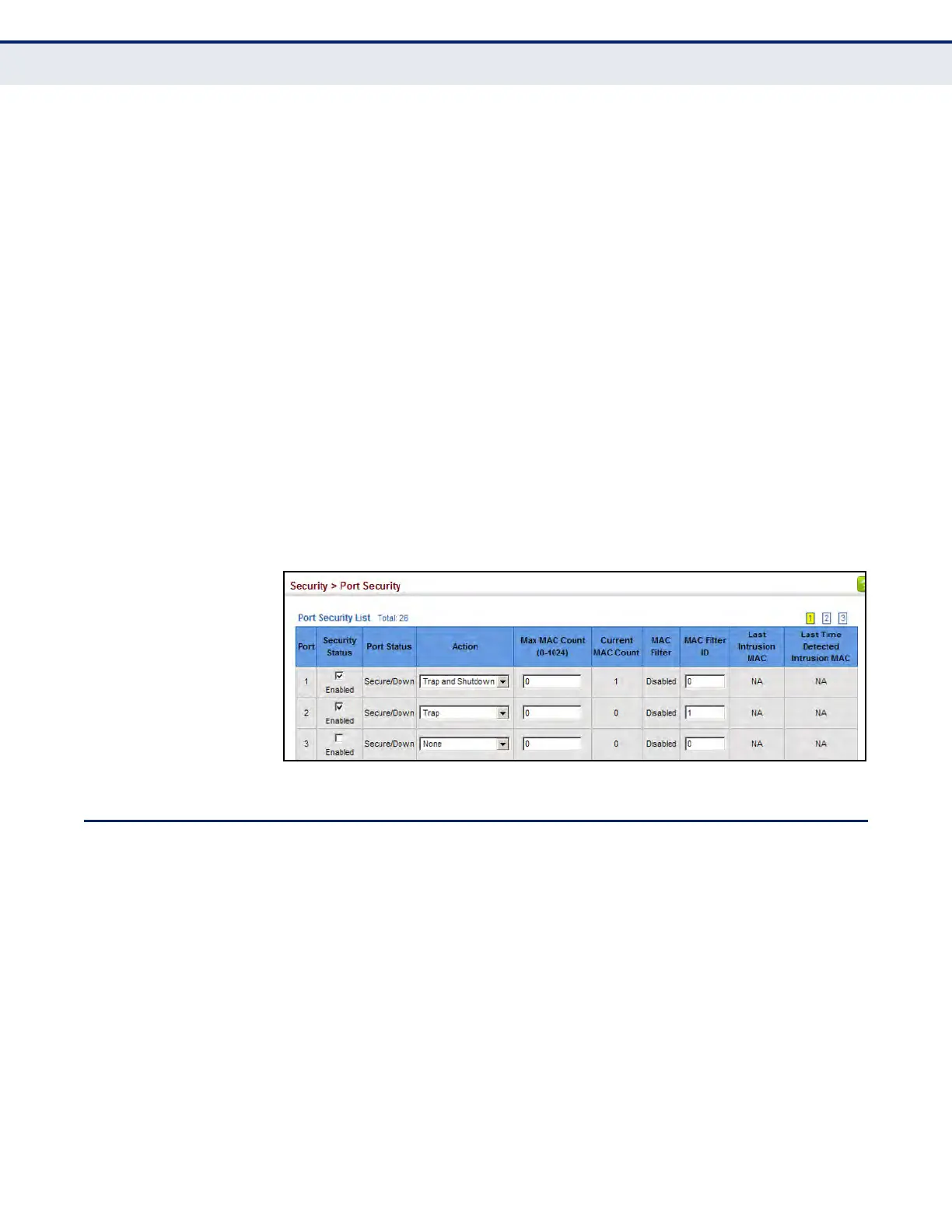 1. Click Security, Port Security.