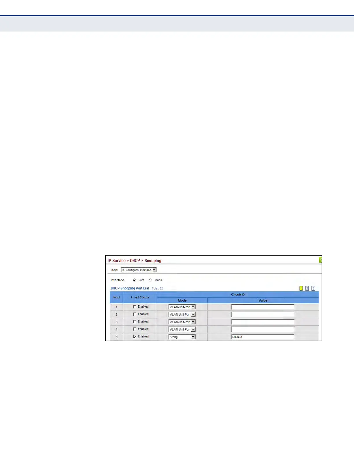 Figure 224: Configuring the Port Mode for DHCP Snooping