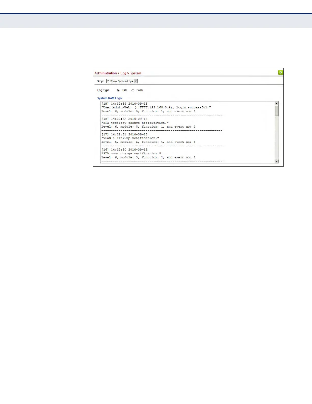 Figure 227: Showing Error Messages Logged to System Memory