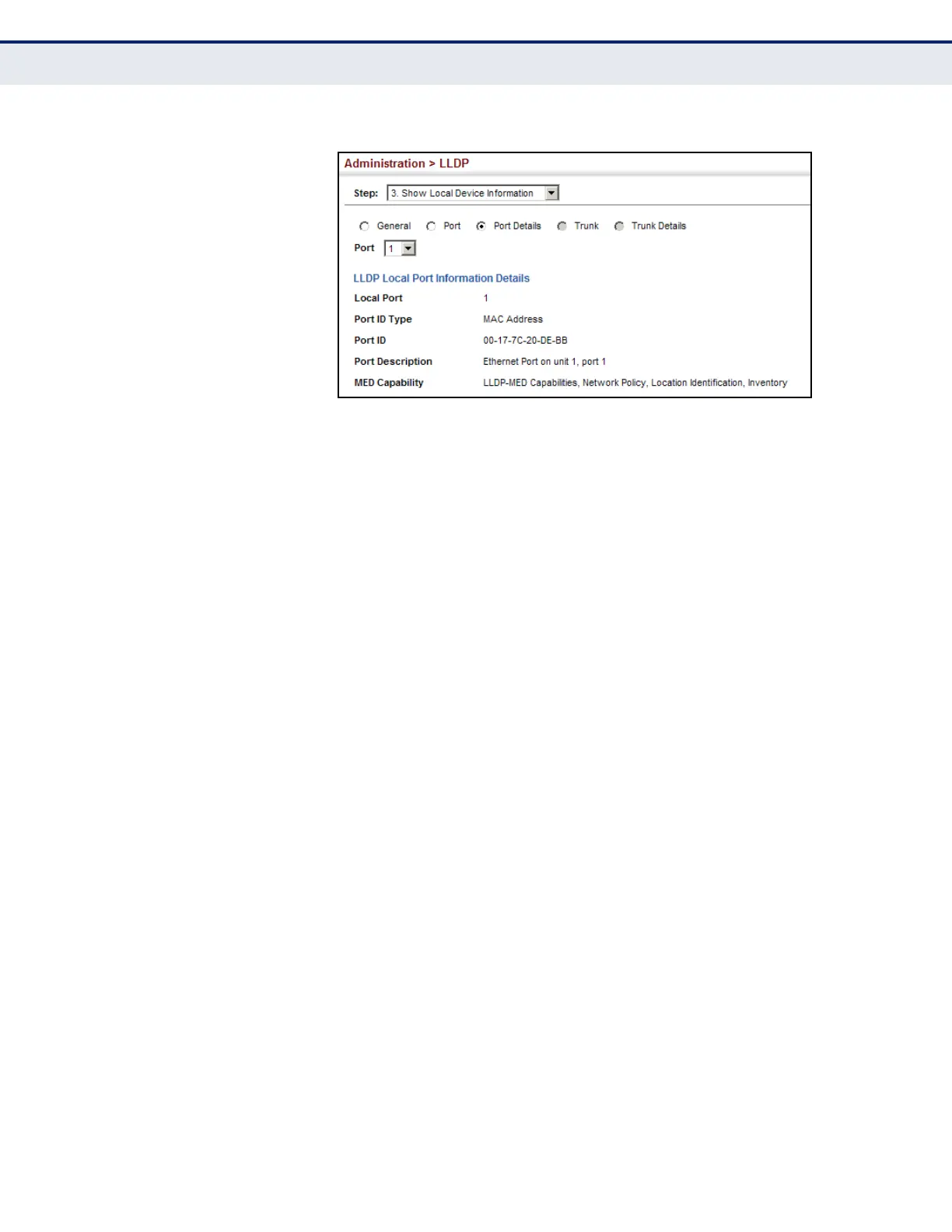 Figure 236: Displaying Local Device Information for LLDP (Port Details)