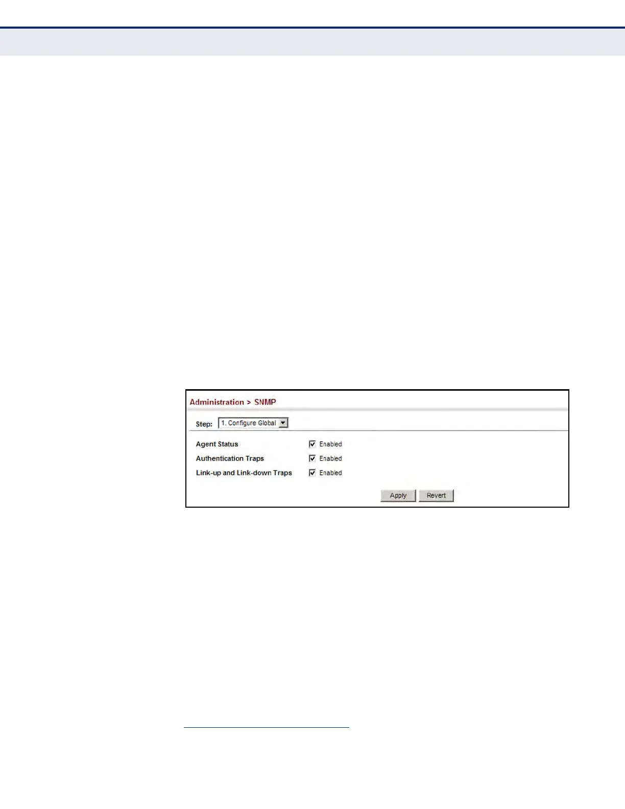 u Agent Status – Enables SNMP on the switch. (Default: Enabled)