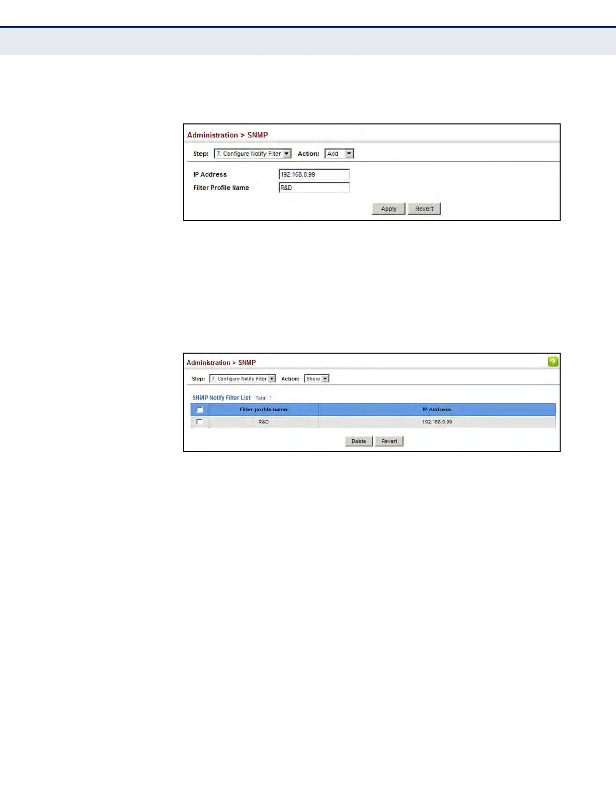 Use the Administration > SNMP (Show Statistics) page to show counters