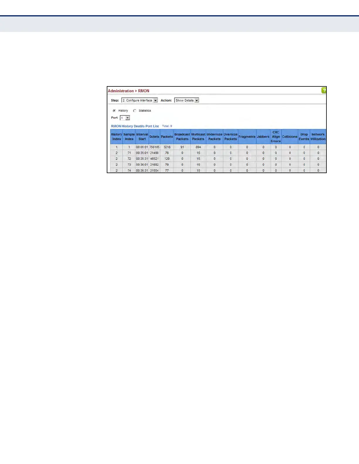 Figure 271: Showing Collected RMON History Samples