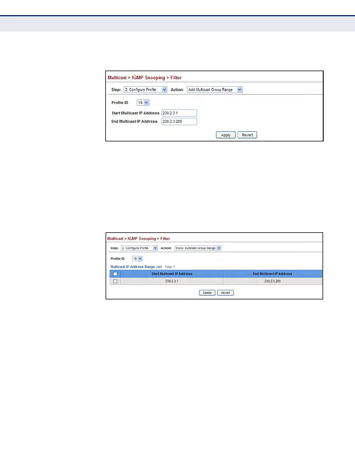 Figure 337: Adding Multicast Groups to an IGMP Filtering Profile