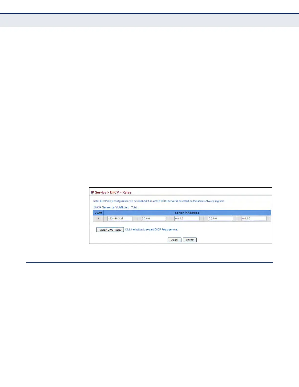 u Restart DHCP Relay – Use this button to re-initialize DHCP relay