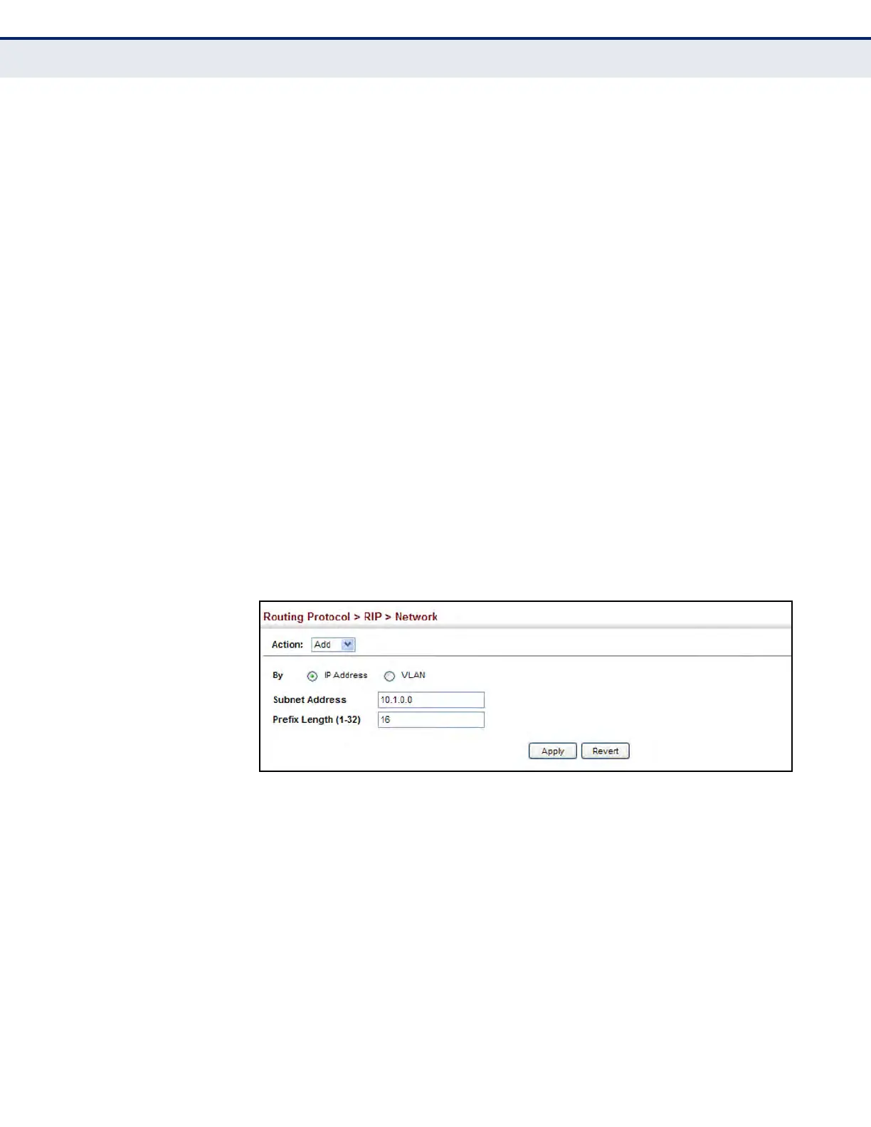 u By VLAN – Adds a Layer 3 VLAN to the RIP routing process. The VLAN