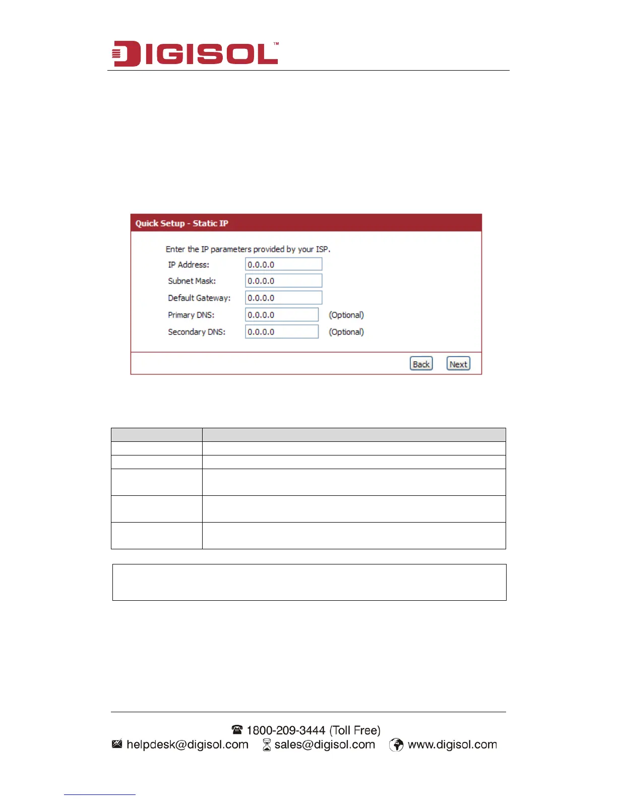 Setup procedure for ‘Static IP’: