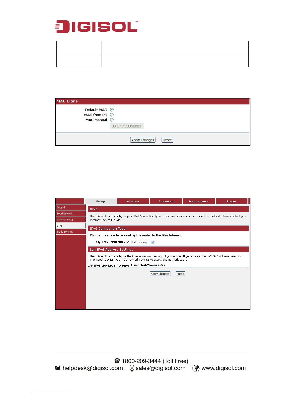 In this section the IPv6 configuration can be done. The WAN and LAN parameters