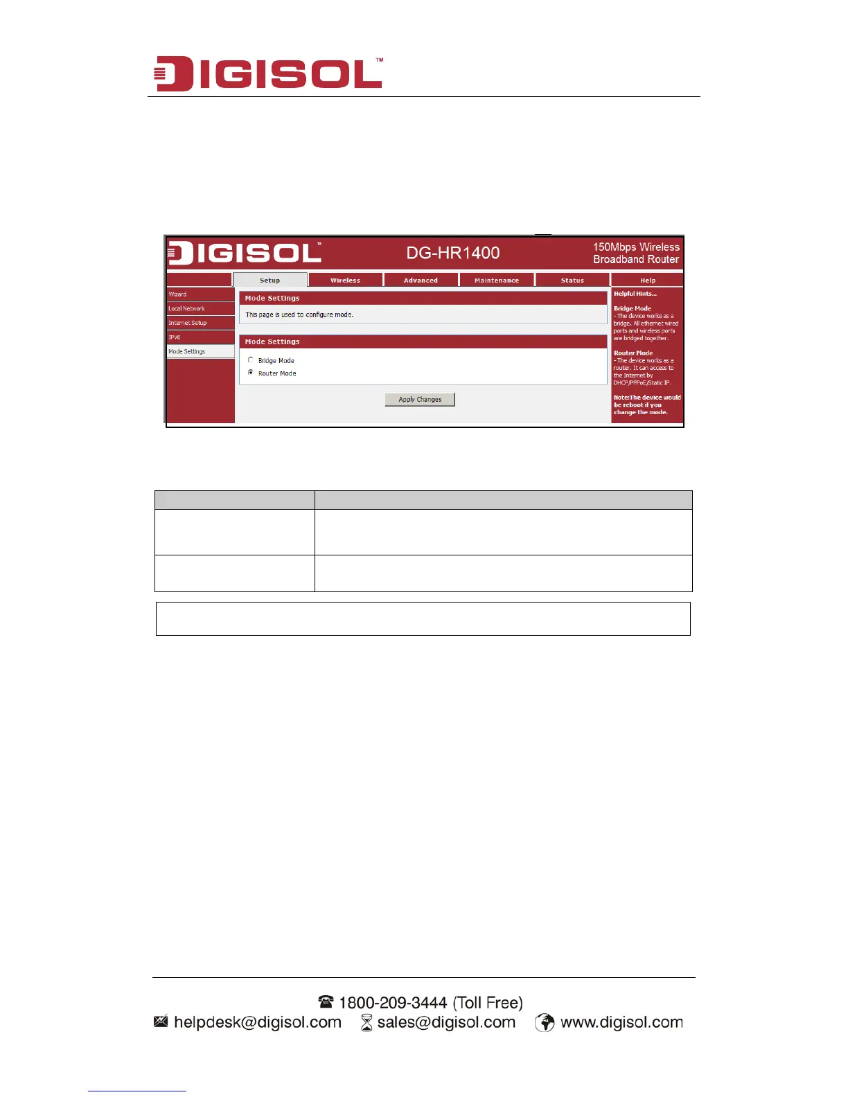 Digisol DG-HR1400 - Mode Settings
