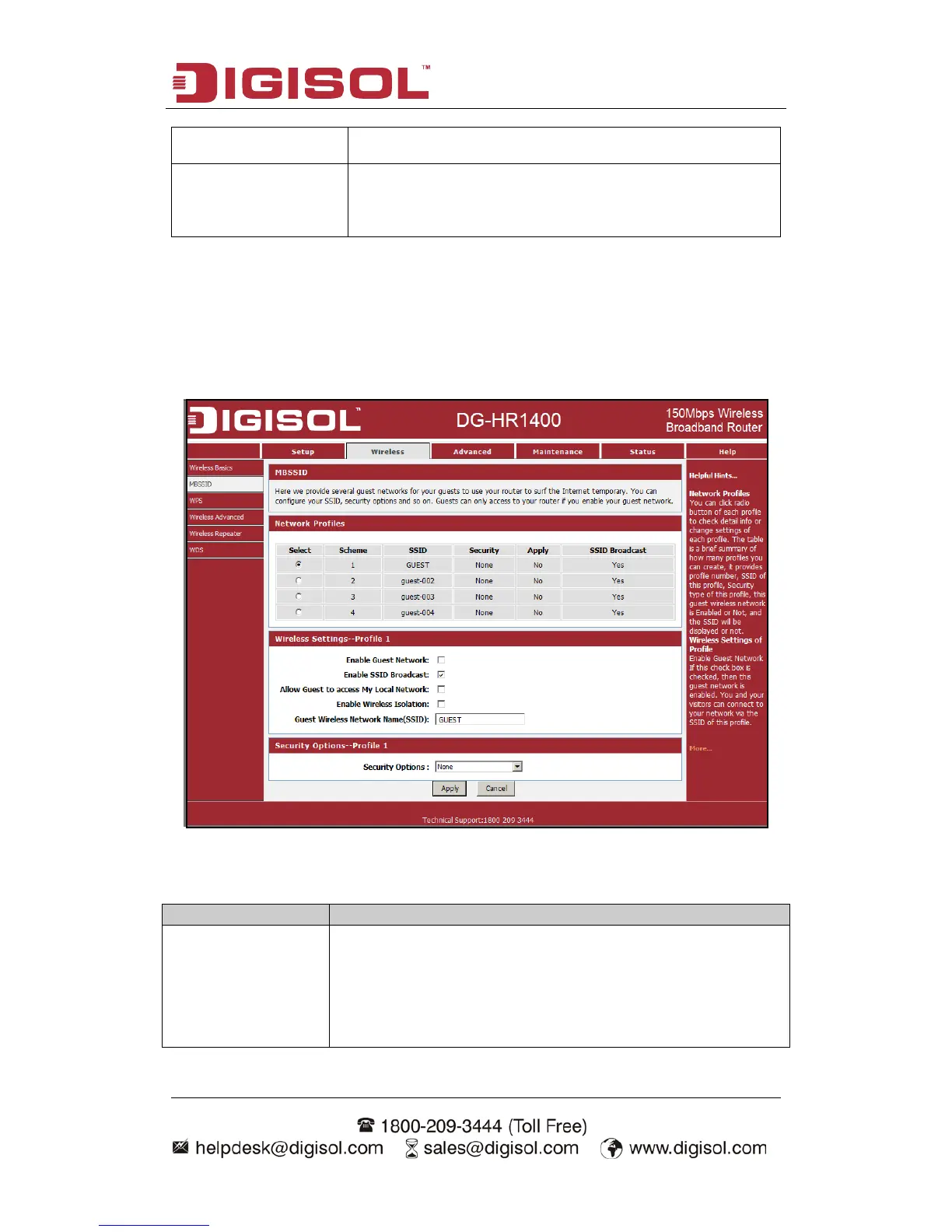 profile, this guest wireless network is Enabled or Not, and the