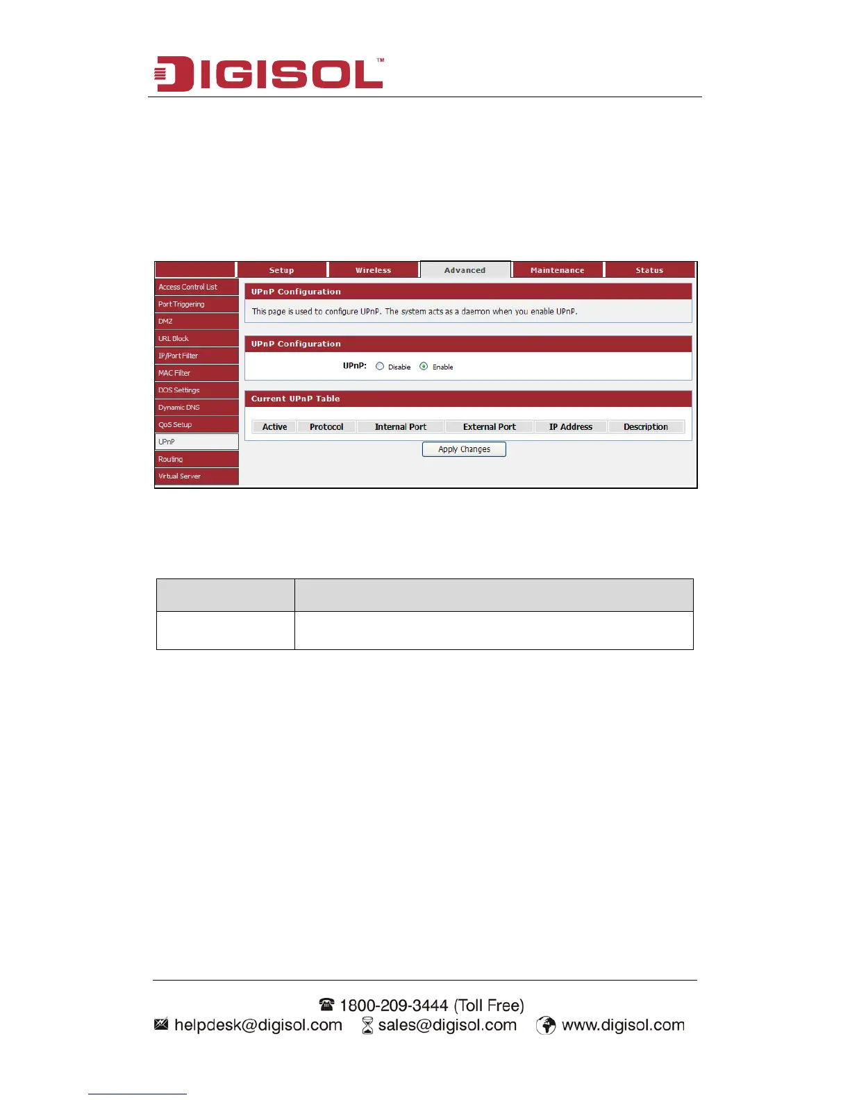 Choose menu AdvancedUPnP”, below given screen will be displayed.