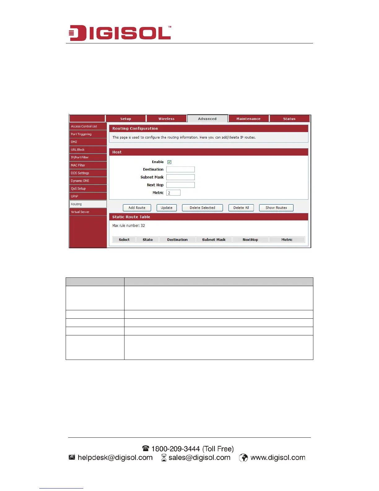 Choose menu AdvancedRouting”, below given screen will be displayed.