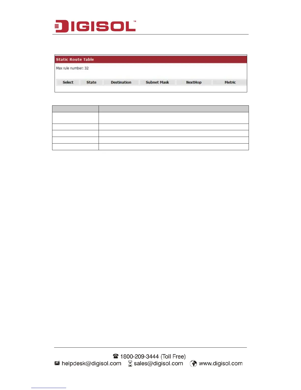 Static route table