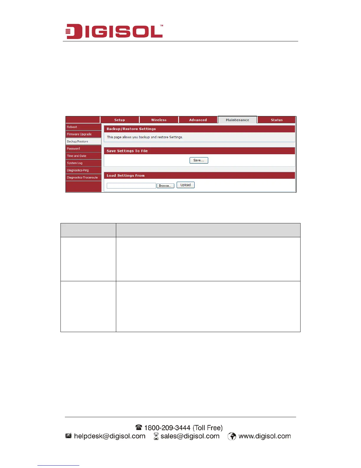 Choose menu “Maintenance→Backup/Restore”, below given screen will be