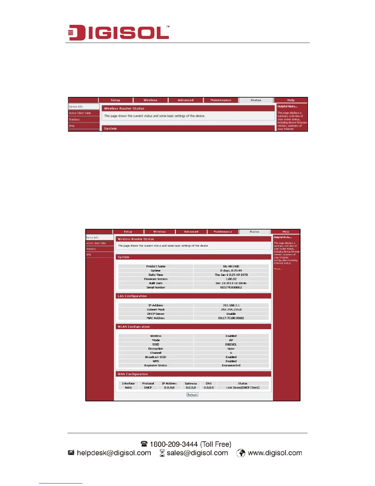 Choose menu “Status→Device Info”, below given screen will be displayed.