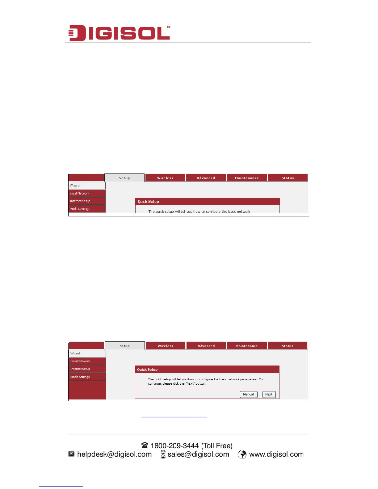 lick ‘Setup’ menu on the top of the web management interface, and the following