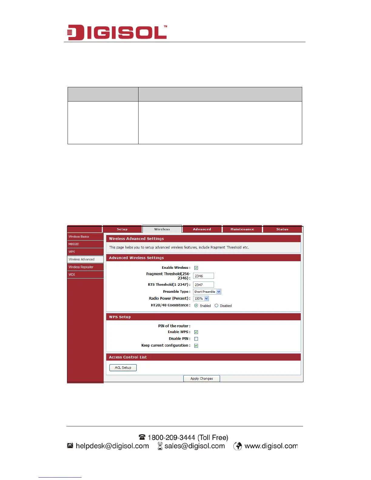 This page helps you to setup advanced wireless features, include Fragment Threshold