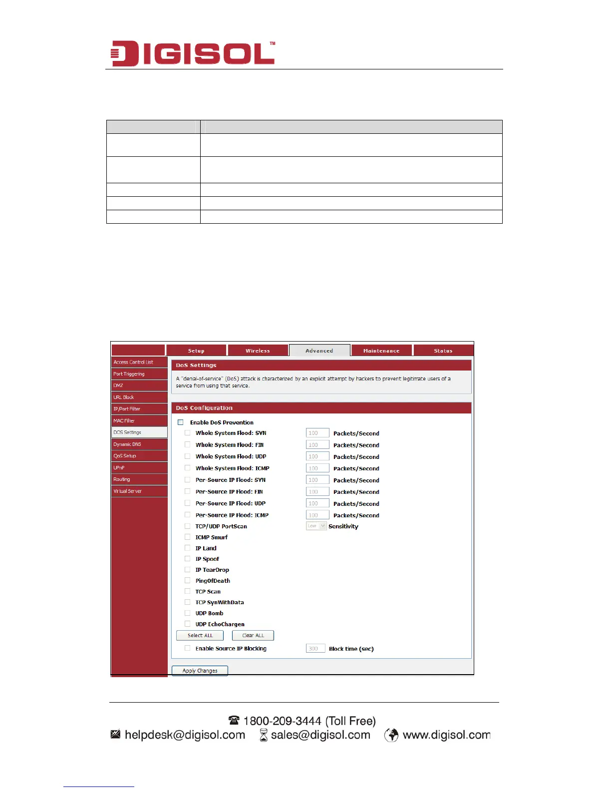 enu “Advanced→DOS Settings”, below given screen will be displayed.