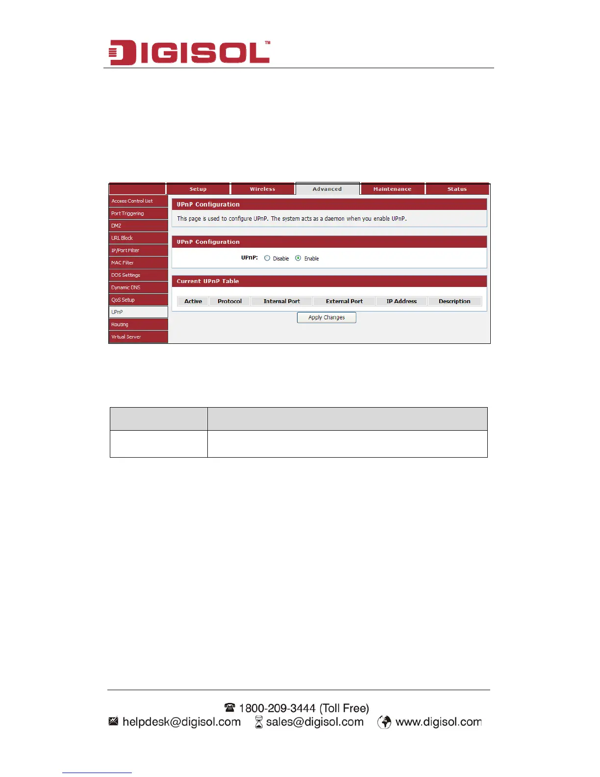 UPnP Select Enable or Disable to enable or disable UPnP function.