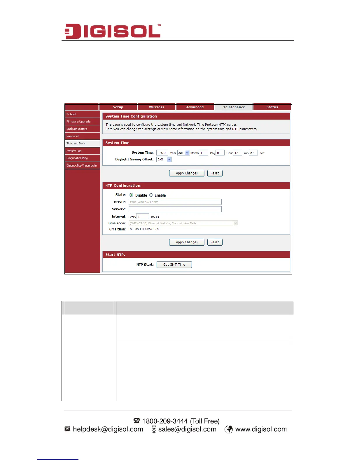Choose menu “Maintenance→Time and Date”, below given screen will
