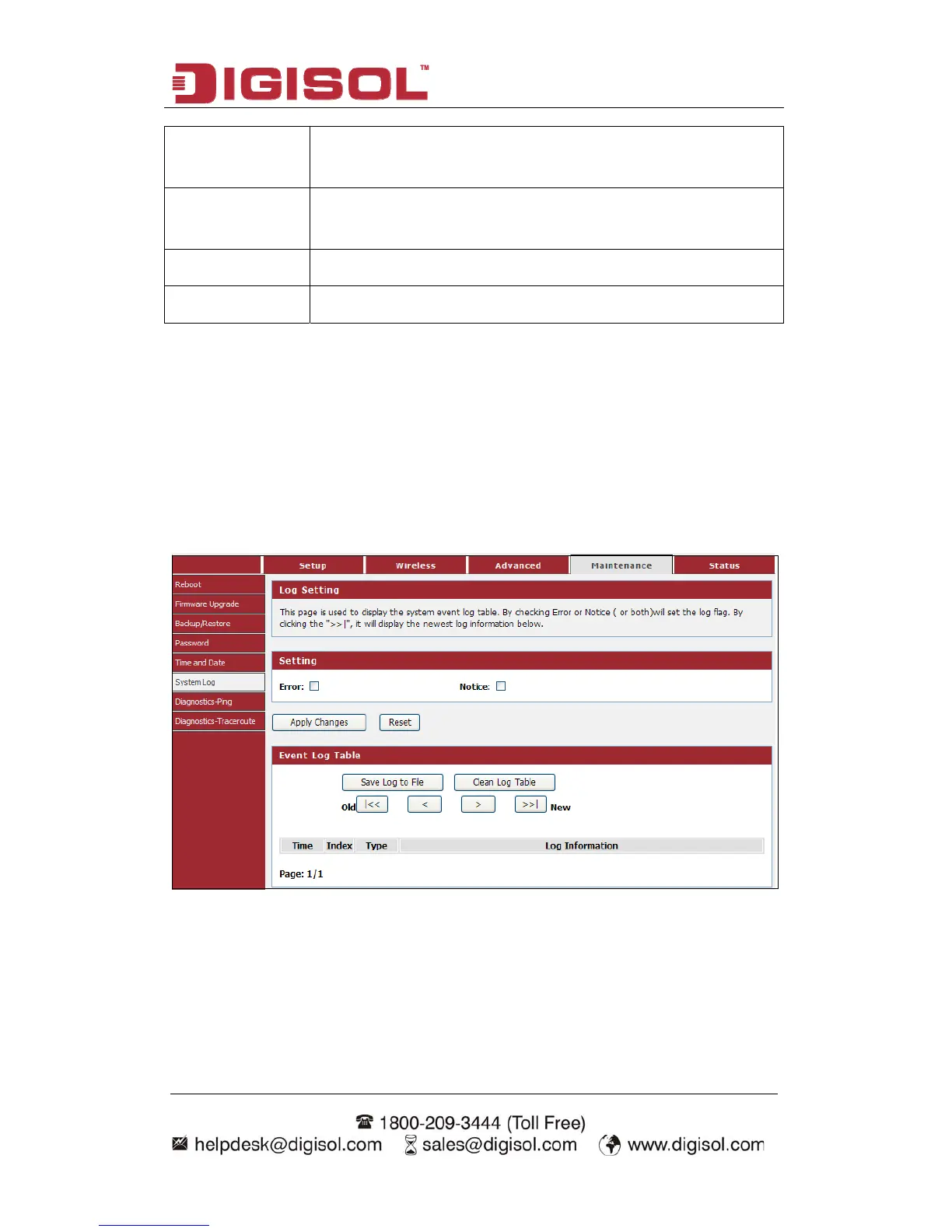 Choose menu “Maintenance→System Log”, below given screen will be displayed.
