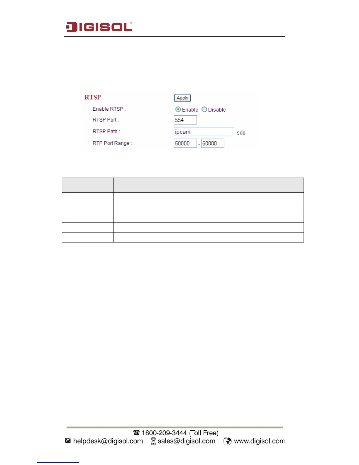 Enable RTSP Select ‘Enable’ to activate RTSP function of this IP camera, select