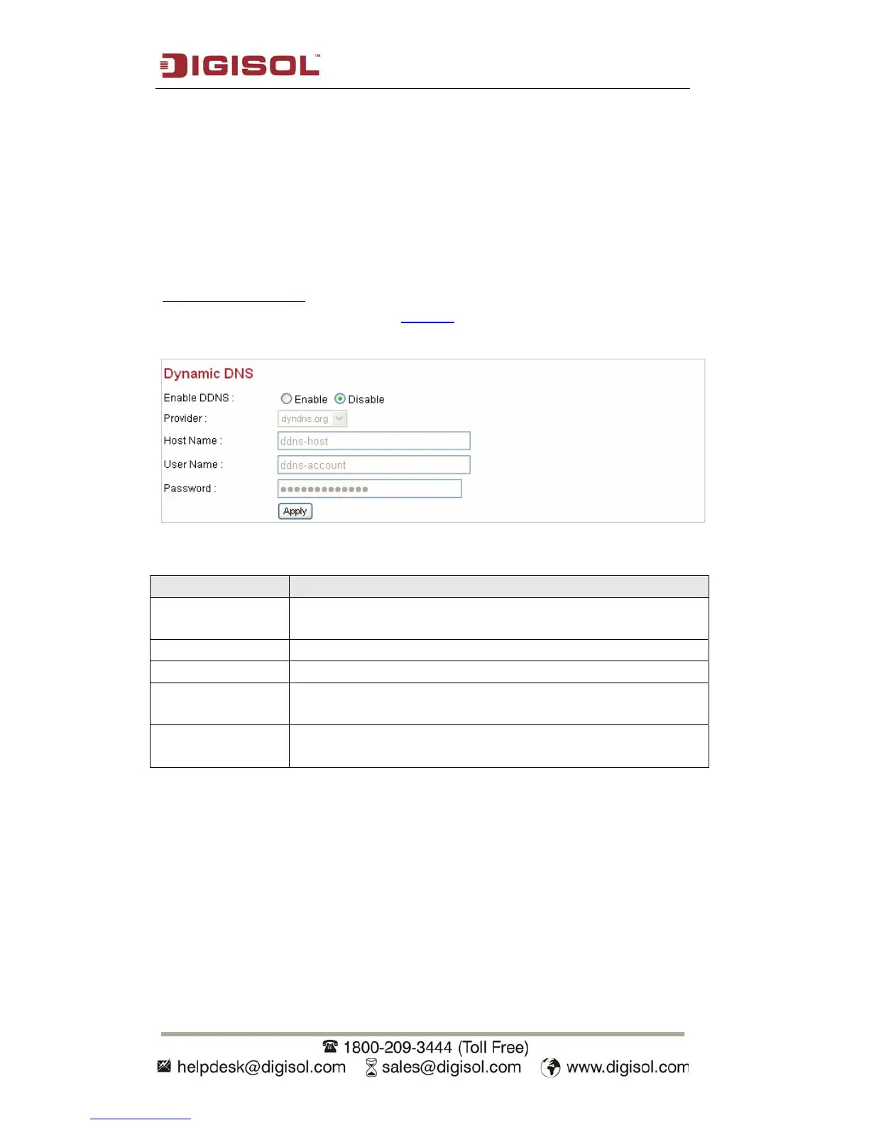Enable DDNS Select ‘Enable’ to activate Dynamic DNS function of this IP
