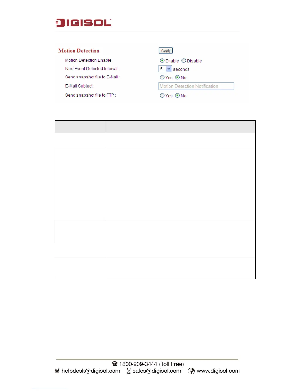 Following screenshot shows the Motion Detection Settings: