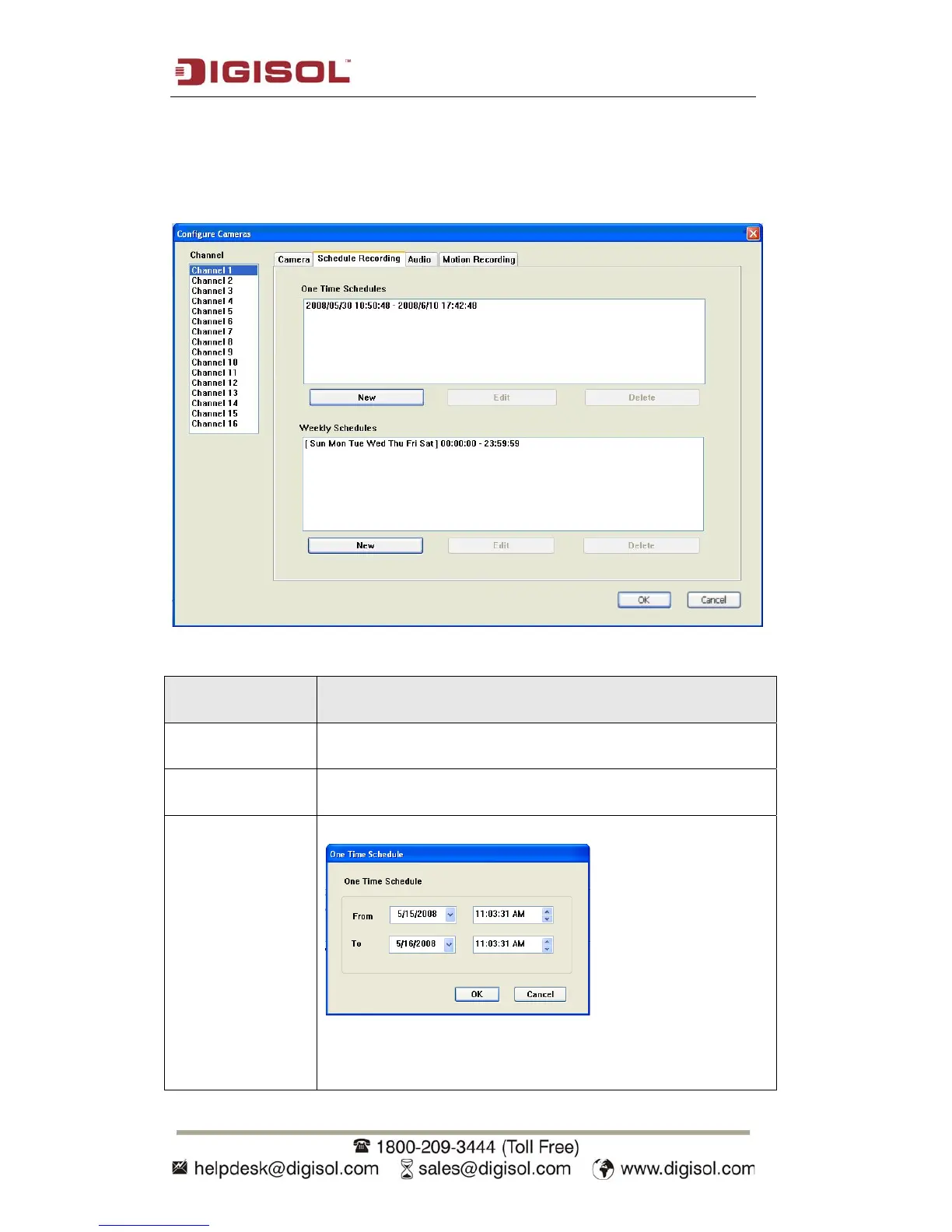 In this tab, schedules for recording video captured by the IP Cameras can be pre-