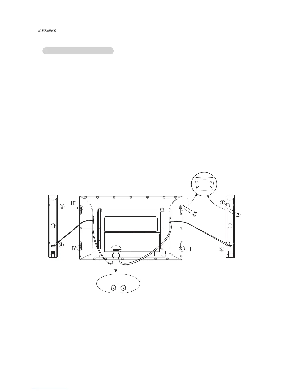 3.Lean the speaker against the plasma screen, ensuring that the screw holes on the connecting block are in