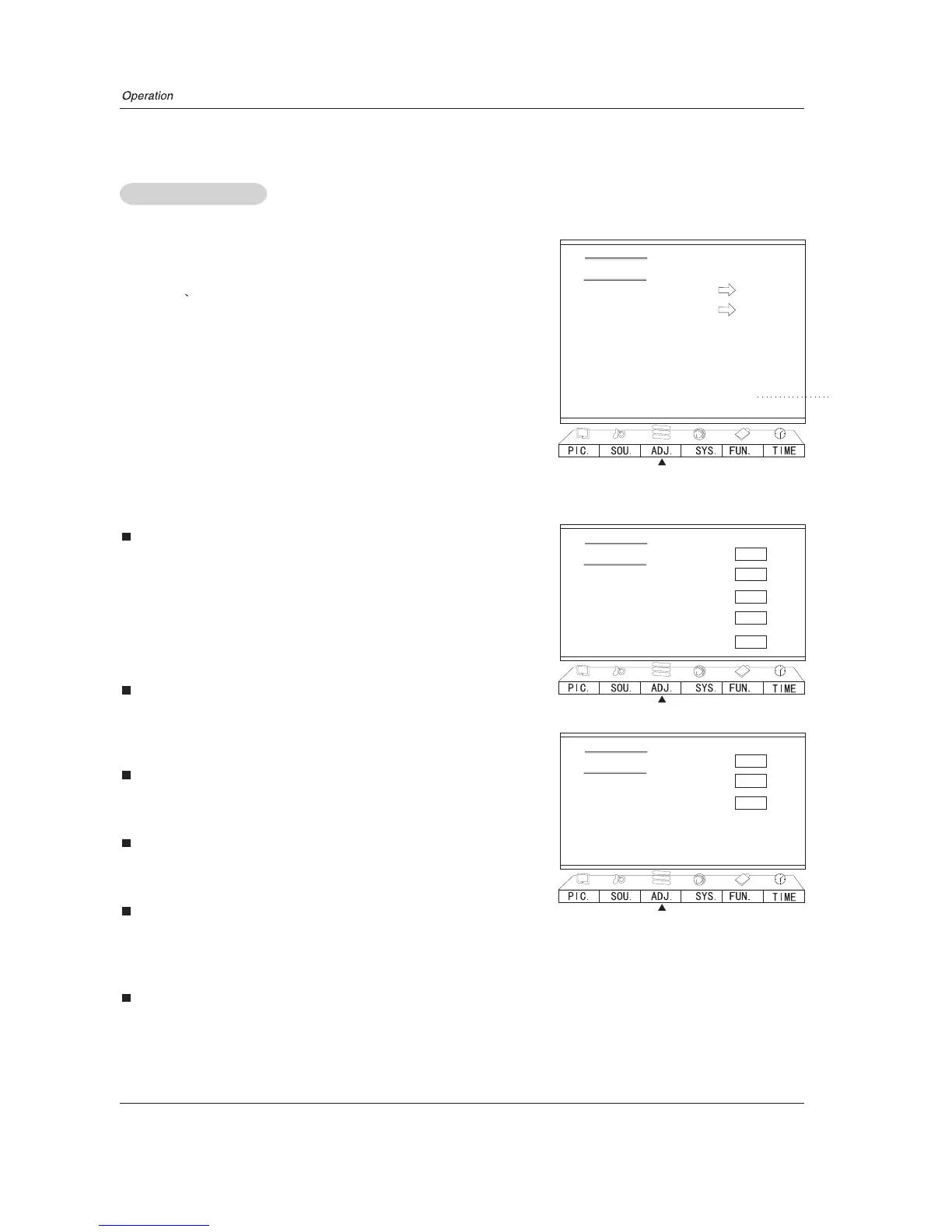 4. Press VOL+/-for desired adjust parameter option until a satisfactory