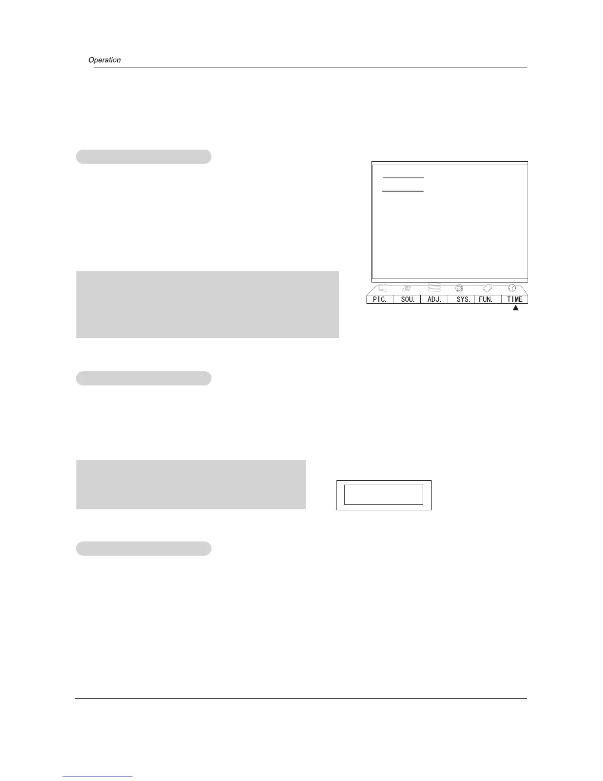 1 Press MENU and then VOL+/- button to call up the TIME menu on the screen.