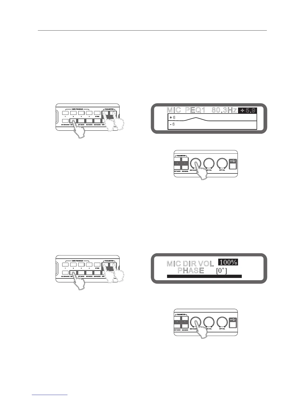 operation: (panel only set the gain of equalizer election) Press the panel button microphone mode