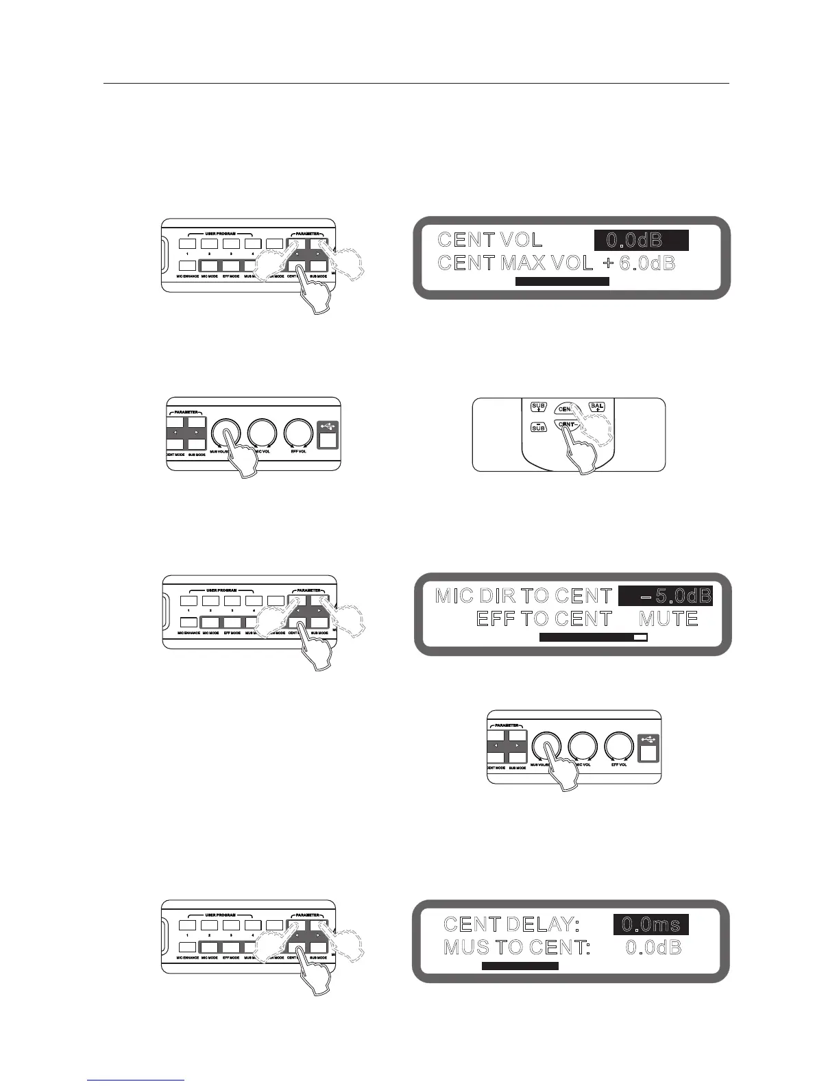 Operation method 1: Press the buttons "Mic Mode" on the panel continuously into the Center music delay and