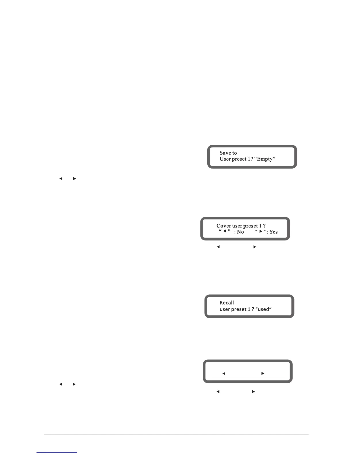 (1) Press Key [STO/RCL] to store Preset, then a confirmation