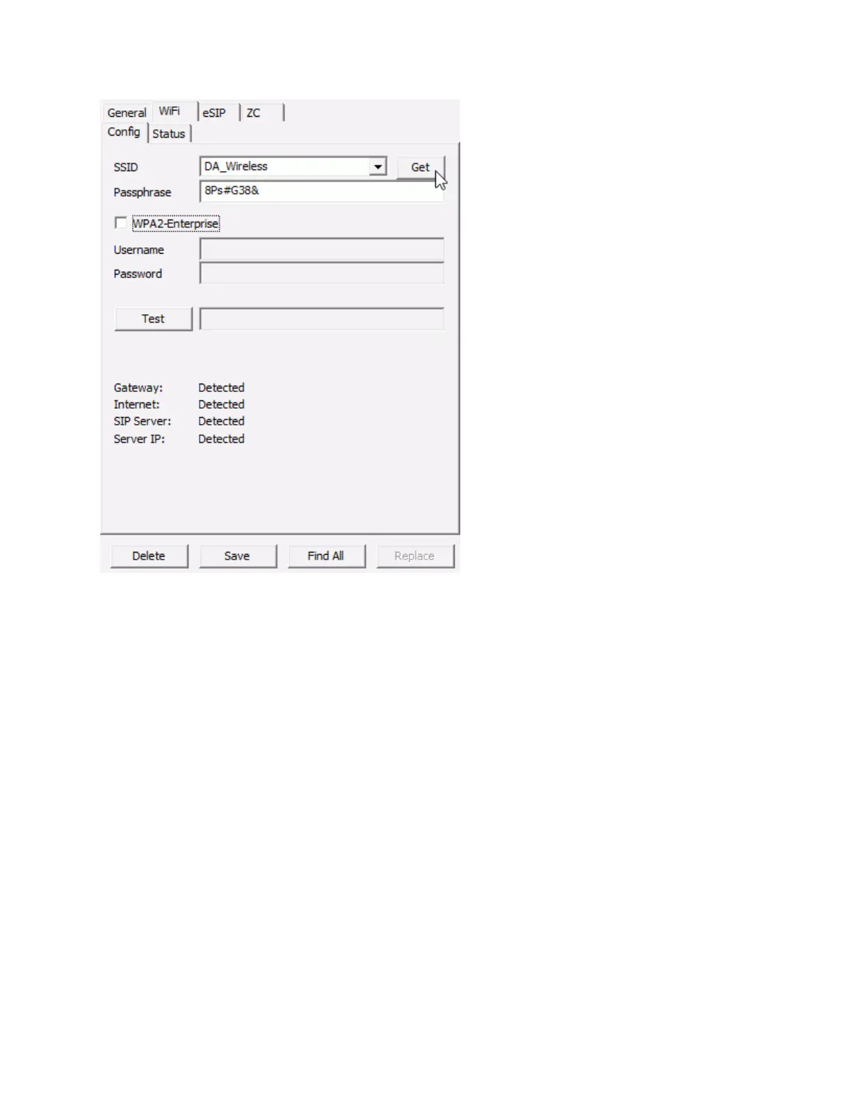 SSID - Enter or select the wireless SSID after pressing the GET button