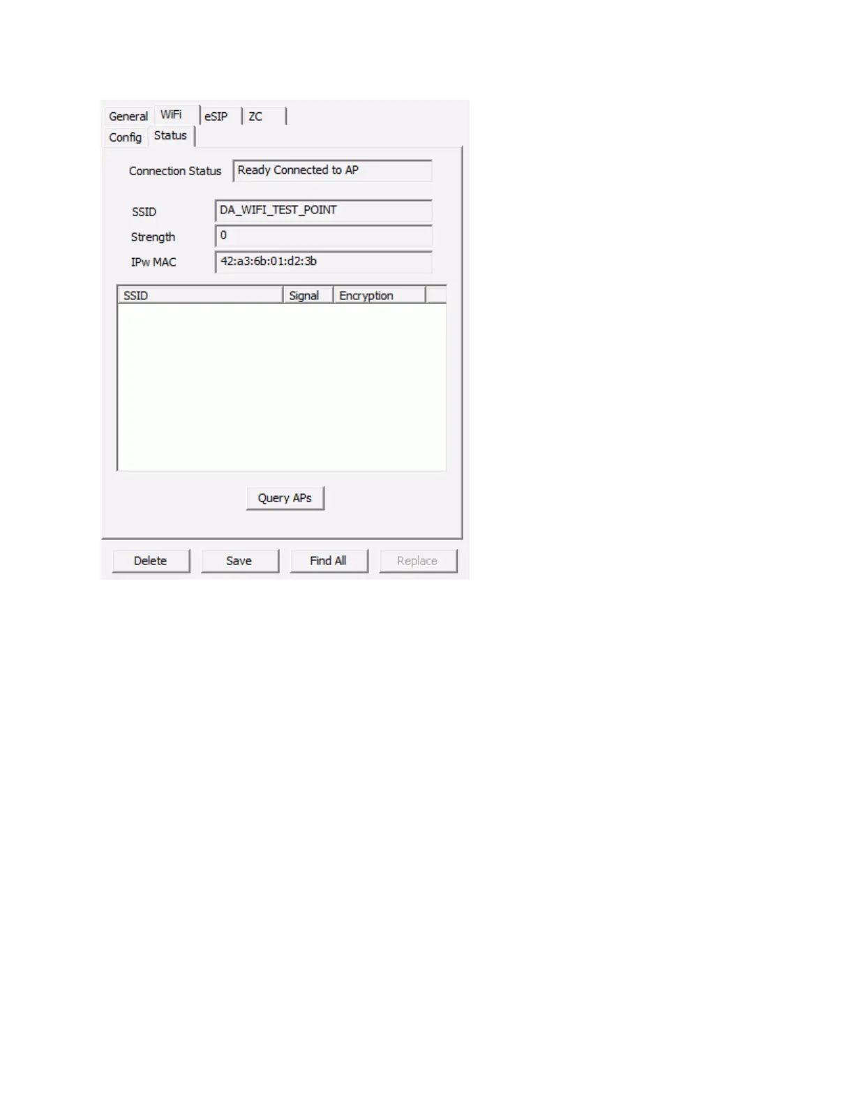 Query APs - Press this button to display a list of SSIDs, their relative signal strength and the Encryption
