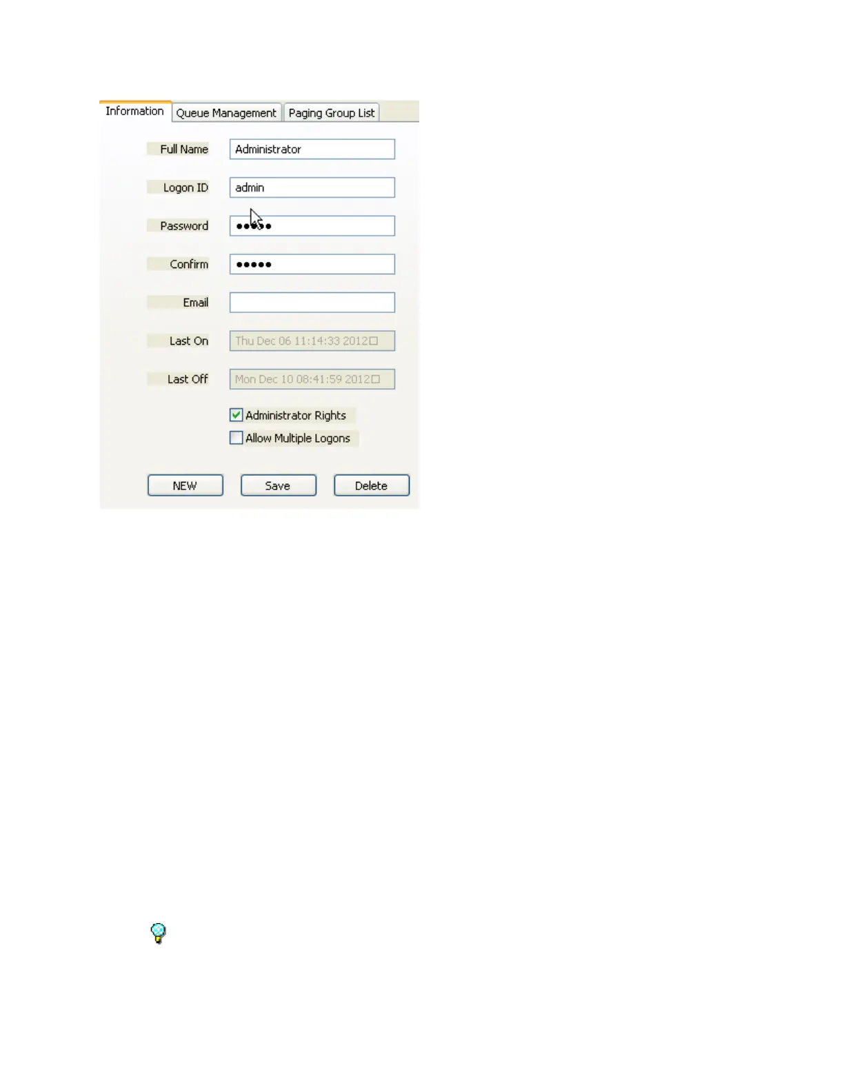operator be logged on multiple times. If an Operator is logged on multiple times, the right hand