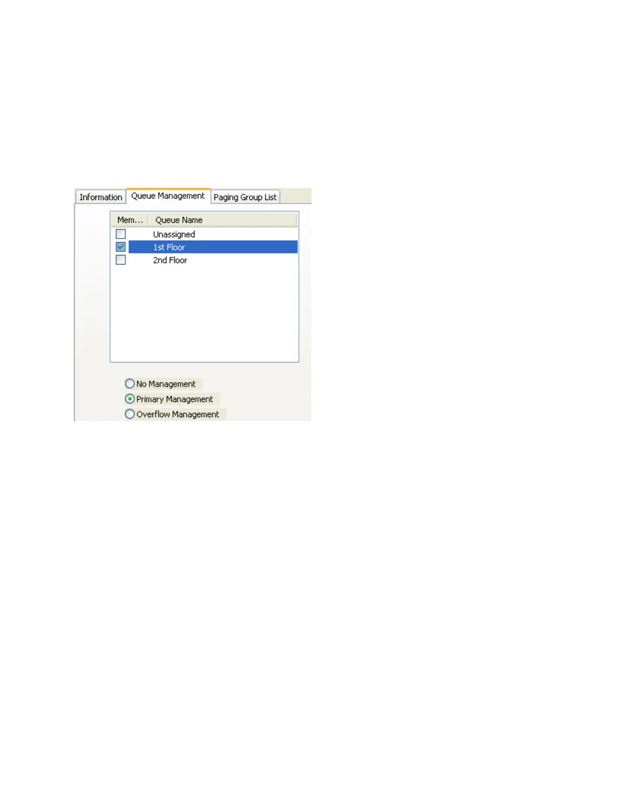 Press the Queue Management and Group List sub tabs to specify the Intercoms and paging