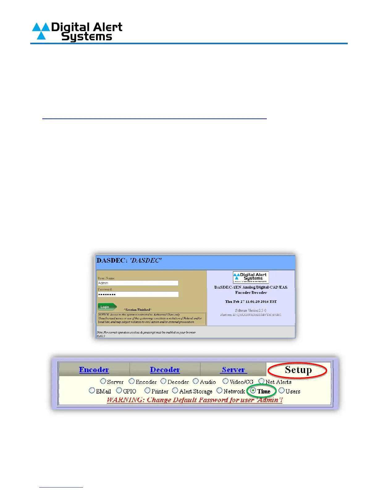 1) Log into your DASDEC-II by launching an Internet browser and typing the IP Address of your