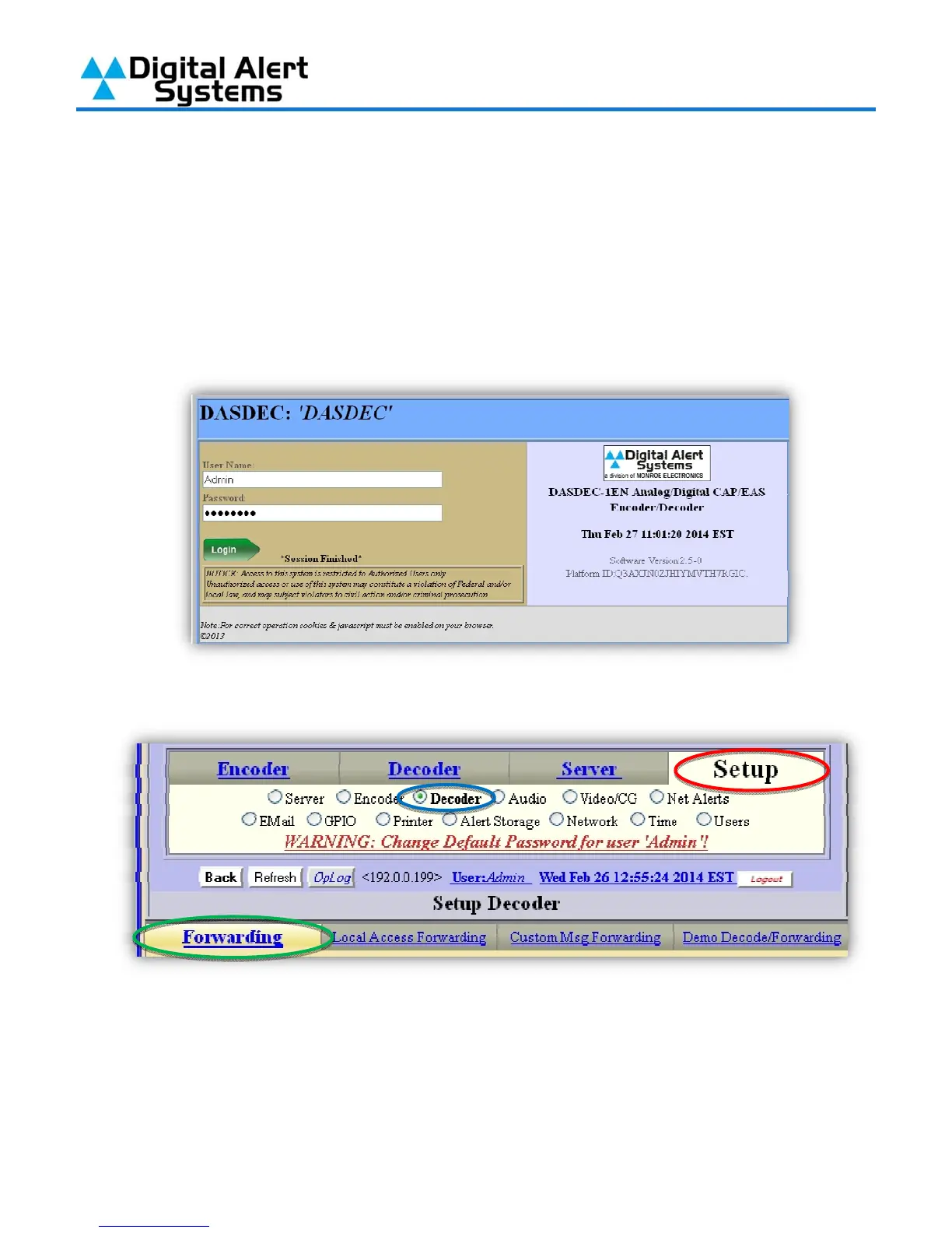 DASDEC-II into the browsers address bar. Enter the User Name “Admin” and then enter the