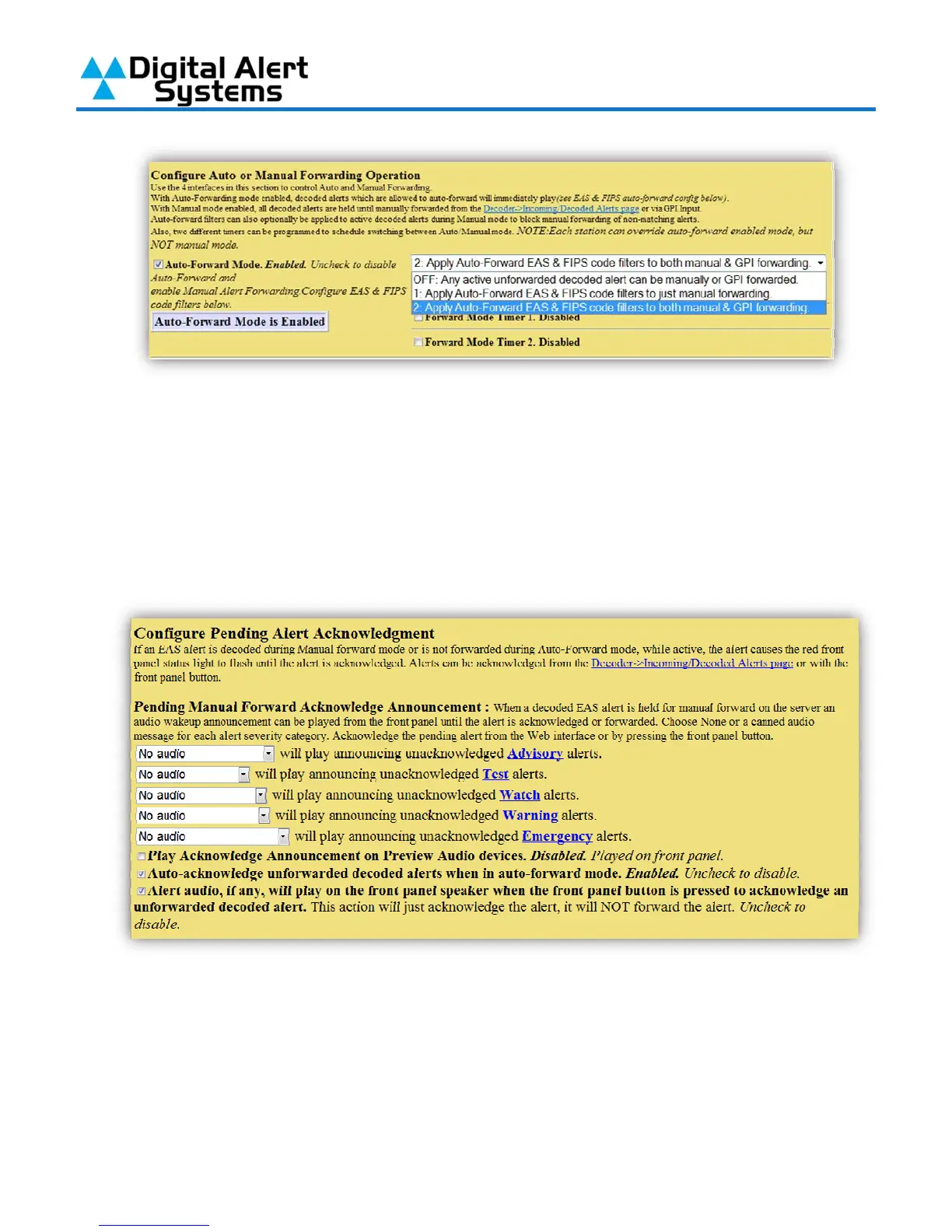 “Manual Mode”. If “Off” is selected any alert received will be made available to be manually