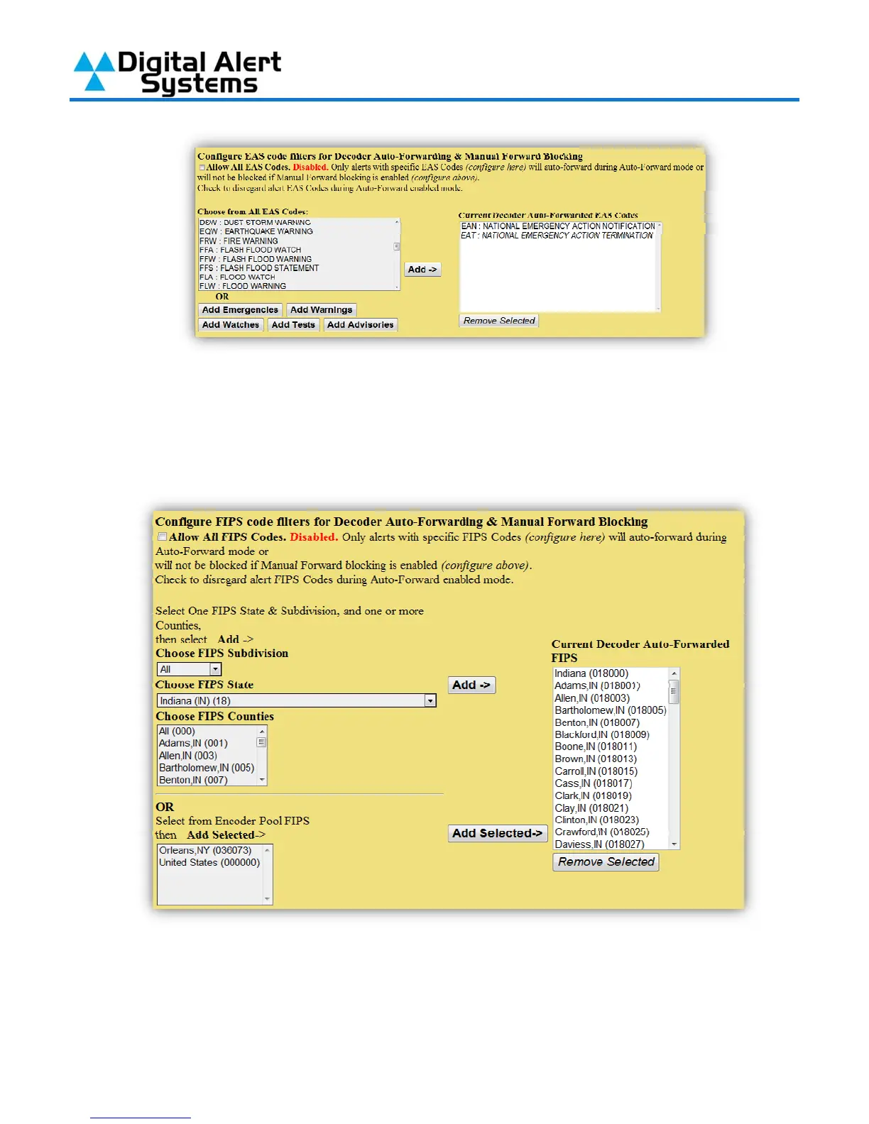 DASDEC-II is set to “Allow All FIPS Codes”, this is not recommended. When you clear the