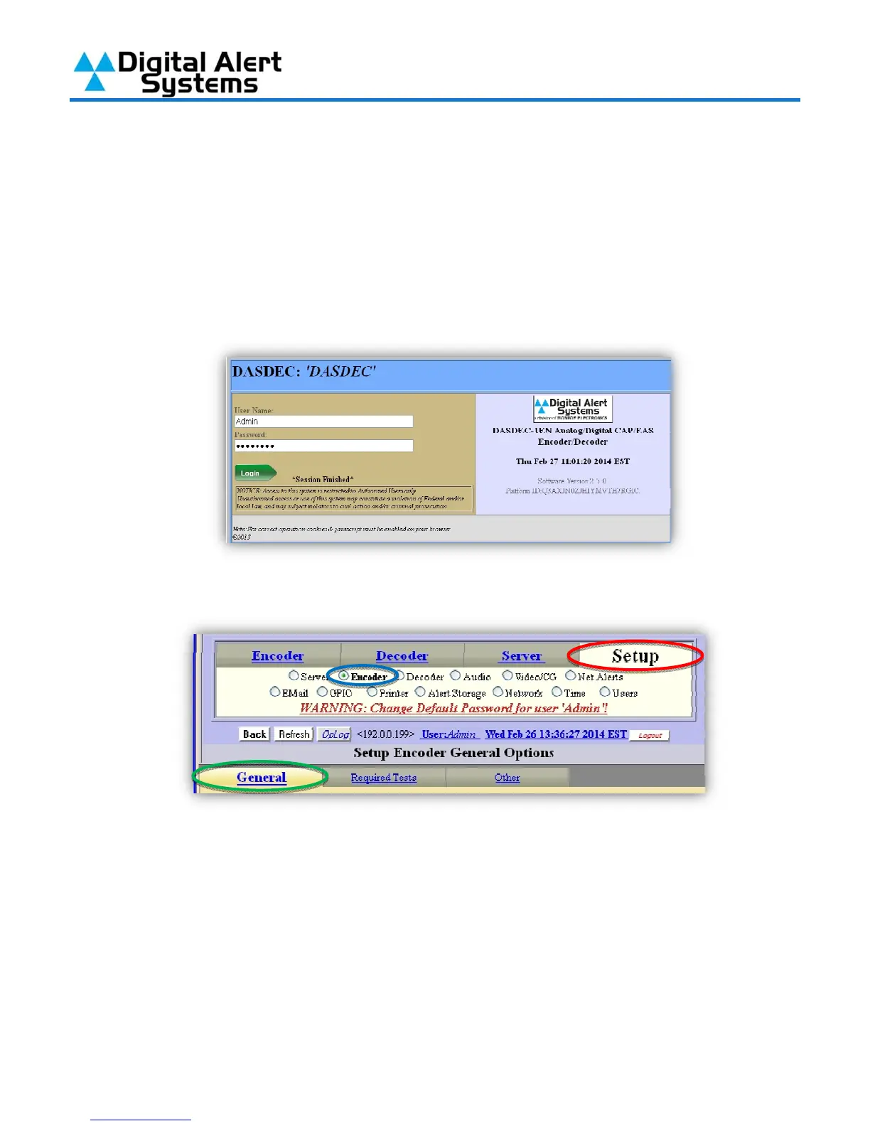 DASDEC-II into the browsers address bar. Enter the User Name “Admin” and then enter the