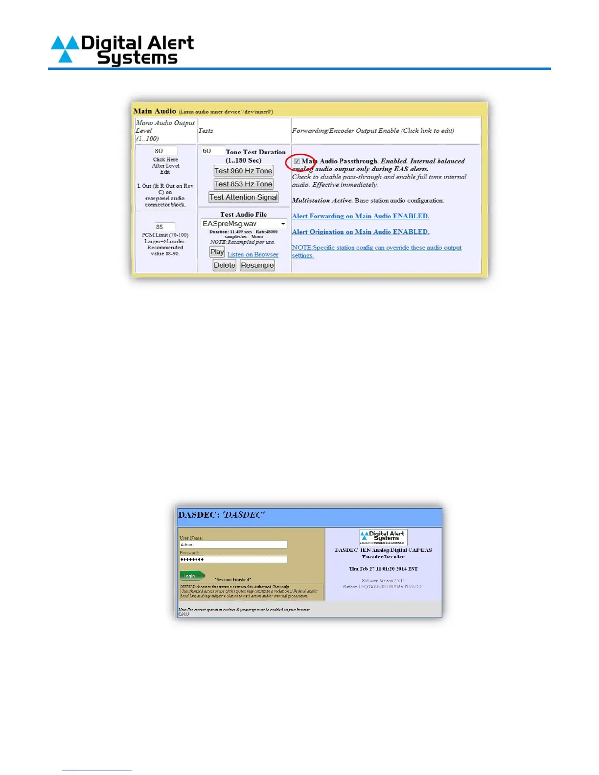 DASDEC-II into the browsers address bar. Enter the User Name “Admin” and then enter the