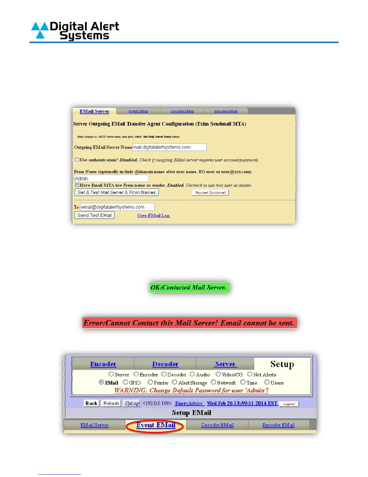 6) After setting the E-Mail Server click on the tab for “Event Email” (circled in red).