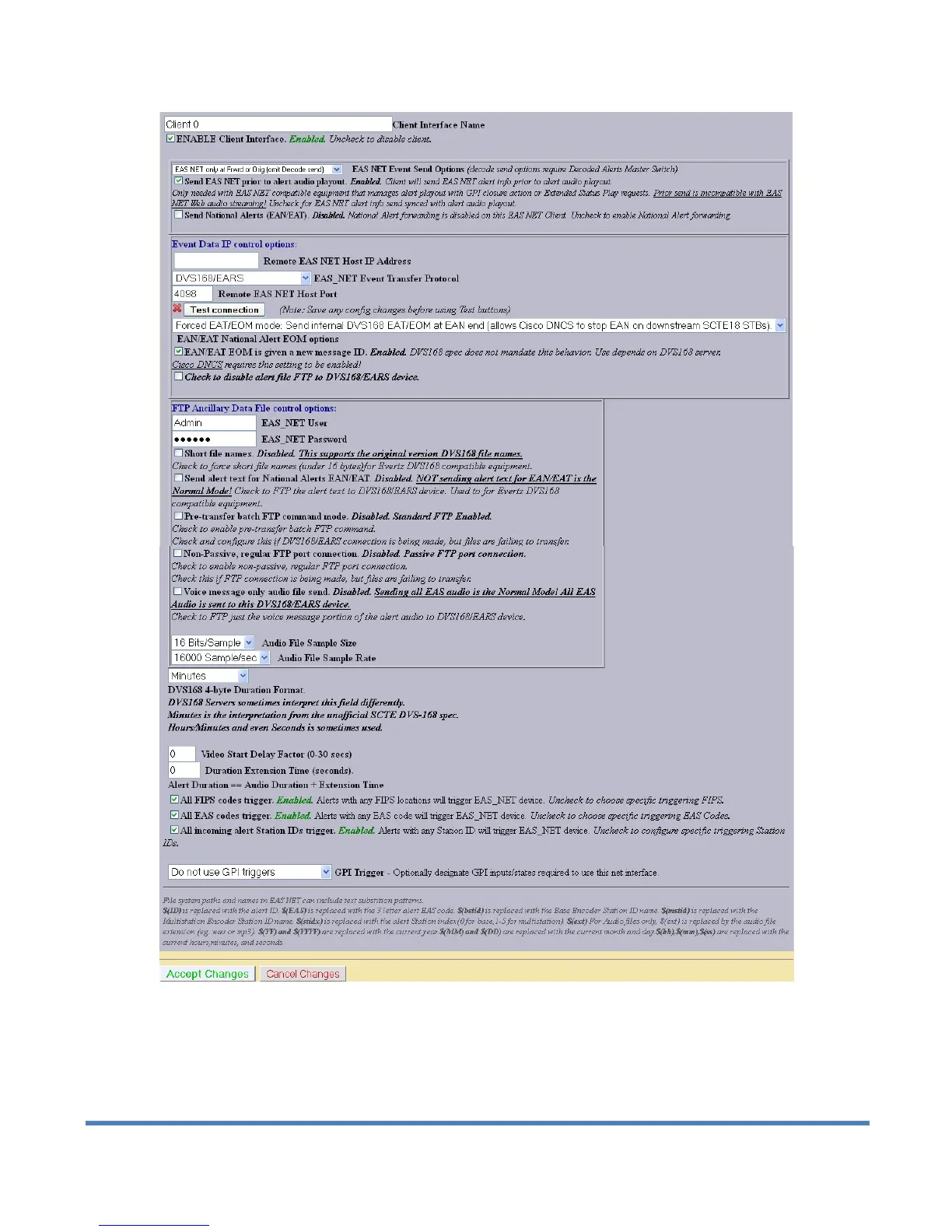 Setup > Net Alerts > EAS NET Client Configuration - DVS168/EARS